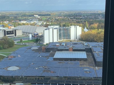 angekommen geht es erstmal mit dem Aufzug nach ganz oben. Die Aussicht ist erwartbar gut.