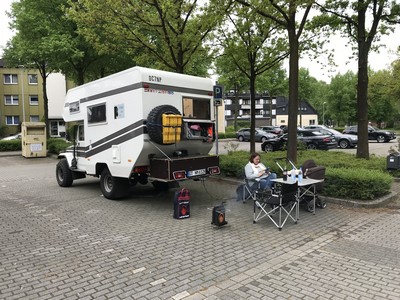 Sonntag, 29.4.2018:Der Morgen beginnt mit Regen, aber das stört uns wenig. Ich hab es noch geschafft den Grill vorher reinzuholen. Wir haben ja Zeit, so kommen wir erst gegen Mittag los. Wir fahren zurück nach Duisburg, über die Innenstadt und Ruhrort nach Meiderich. Hier haben Oma und Opa gewoht. Sieht noch fast so aus wie früher. Von hier aus ist es nur noch ein Katzensprung zum Landschaftspark Nord. Das ist ein stillgelegtes Stahlwerk was zum Freiluftmuseum wurde. Man kann sogar auf einen alten Hochofen klettern. Zu dumm das unsere Kamera zu Hause liegt. So gibt es nur Handybilder. Abends werden noch Steaks gebraten, dazu gibt es Spargel. Da wir Sonntag Abend haben verzieht sich die Stadtjugend auch bald, so das wir mit ein paar anderen Mobilen den Platz für uns haben.