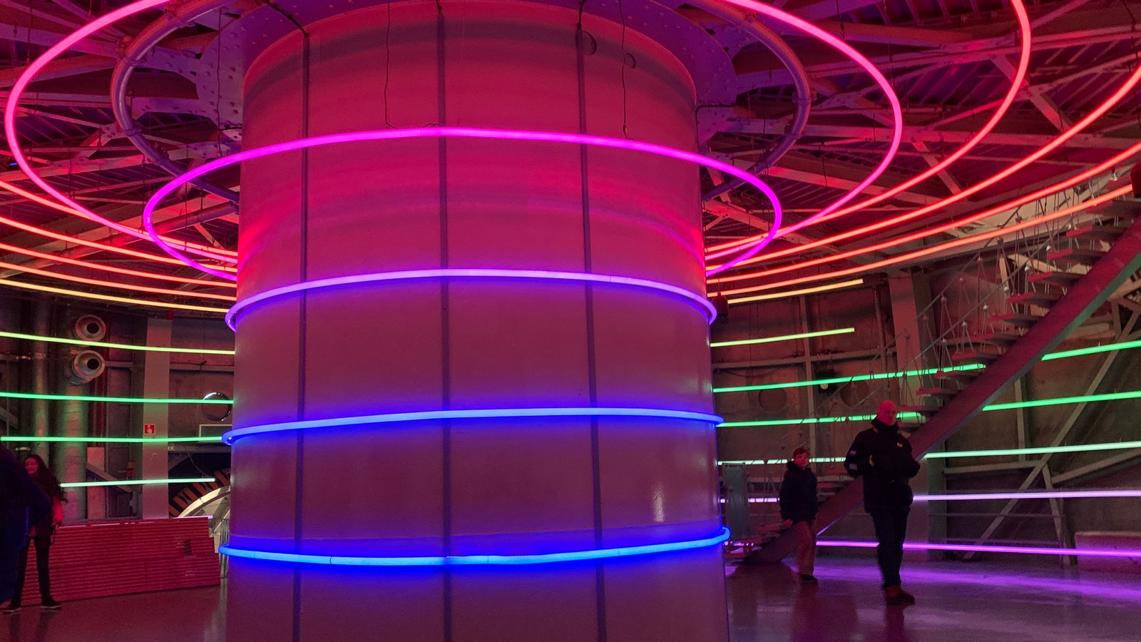 Danach geht es wieder runter und dann über Rolltreppen und normale Treppen in die anderen Kugeln.